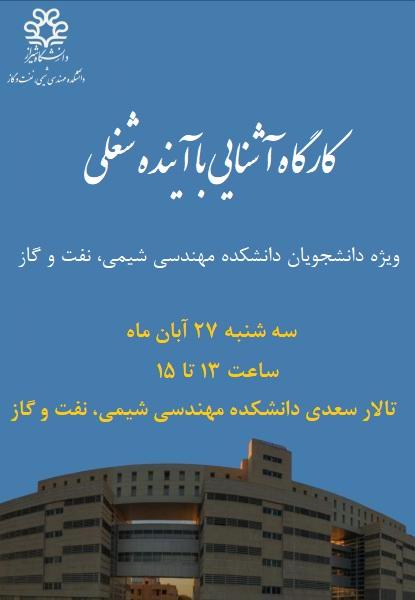 کارگاه «آینده شغلی» روز سه‌شنبه ۲۷ آبان‌ماه ۱۴۰۴ از ساعت ۱۳ تا ۱۶:۳۰ در تالار سعدی دانشکده مهندسی شیمی، نفت و گاز دانشگاه شیراز برگزار شد. این کارگاه به‌صورت ویژه برای دانشجویان جدیدالورود مقطع کارشناسی رشته‌های مهندسی شیمی و مهندسی نفت طراحی شده بود...