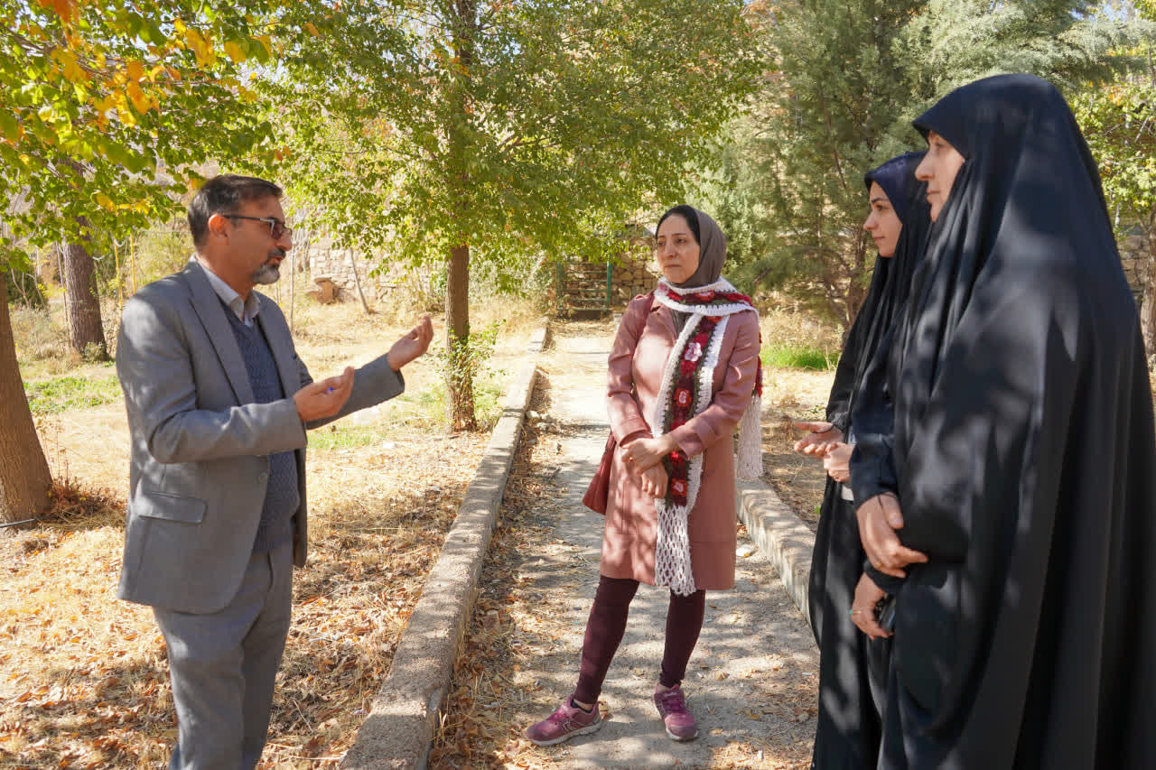 در ادامه، خانم دکتر اختیاری ضمن ارائه پیشنهادهایی در حوزه طراحی محوطه بر پایه اصول زیبایی‌شناسی، استفاده از مصالح بومی و رعایت پایداری محیطی، مستندات و بررسی‌های انجام‌شده در سال ۱۴۰۱ توسط یک تیم دانشجویی منسجم را ارائه و نمایش داد.