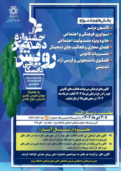 مدیریت فرهنگی با همکاری شورای هماهنگی کانون های فرهنگی دانشگاه شیراز